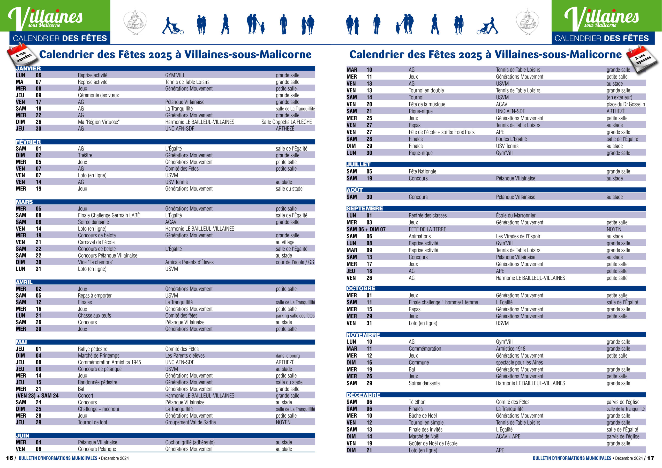 Agenda des manifestations 2025